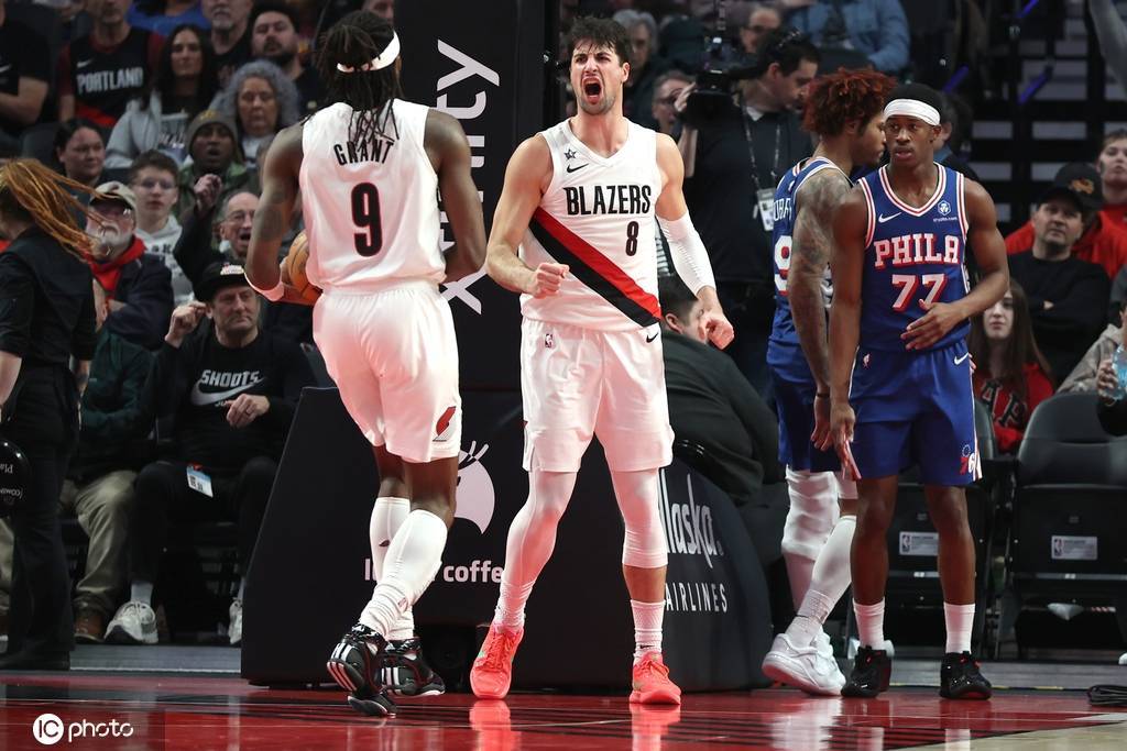 开拓者队首发:图马尼-卡马拉、德尼-阿夫迪亚、杰拉米-格兰特、多诺万-克林根、朱-霍勒迪